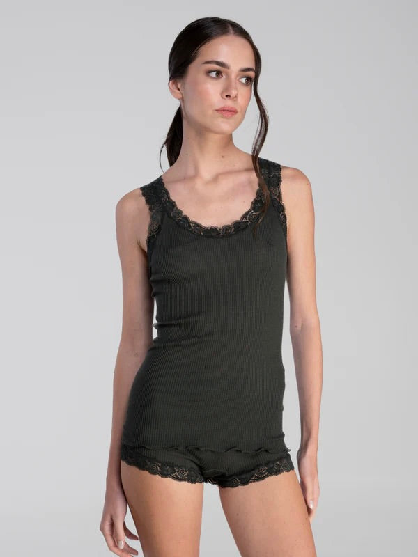 Lekker topp fra Oscalito i en deilig blanding av ull og silke. Lekre blondedetaljer ved stropper.
